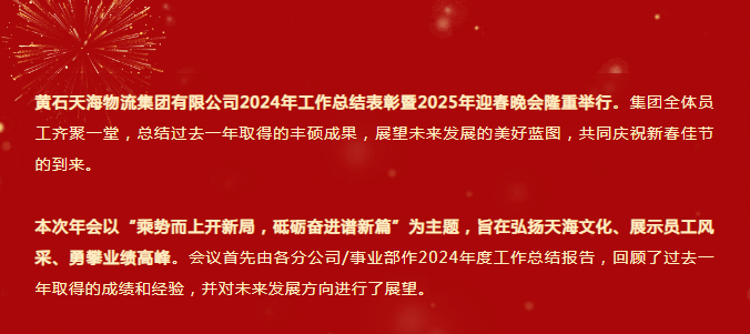 乘勢(shì)而上開新局 砥礪奮進(jìn)譜新篇:黃石天海物流集團(tuán)有限公j司2024年工作總結(jié)表彰暨2025年迎春晚會(huì)圓滿結(jié)束